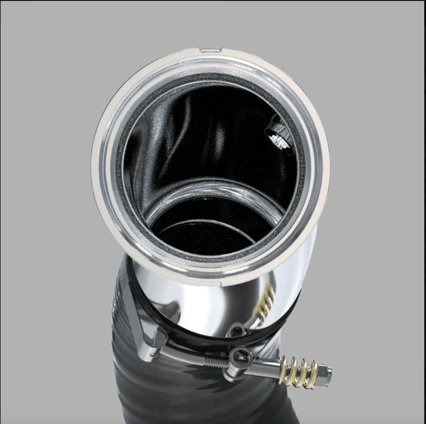 - Larger than stock 3.50” diameter polished aluminum CAC pipe.